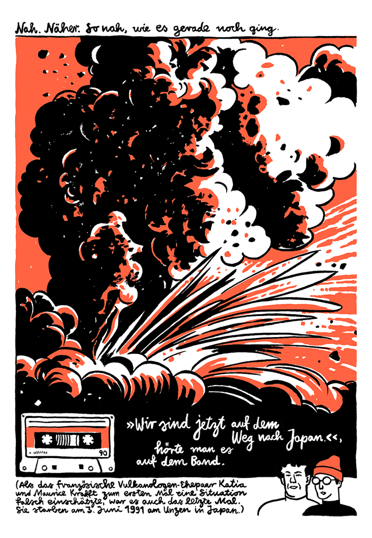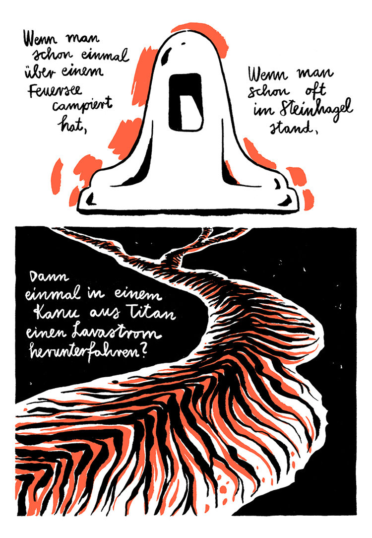 Aschewolken sind geräuschlos. Vierseitiger Comic zum Thema »Zum ersten Mal« anlässlich der ersten Stuttgarter Comictage, 2019