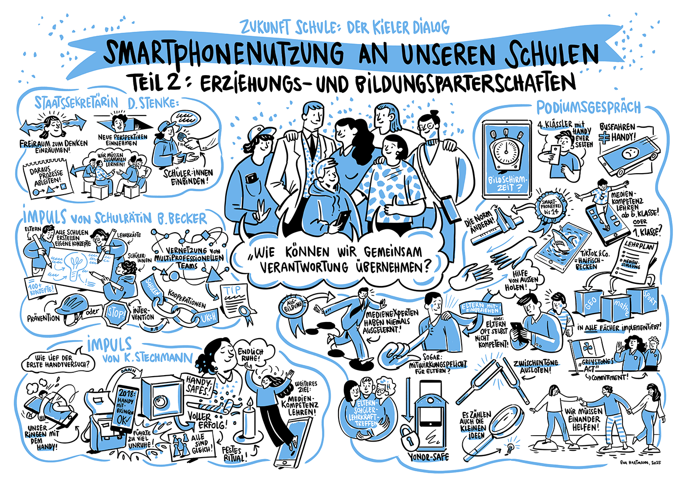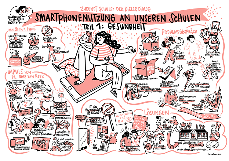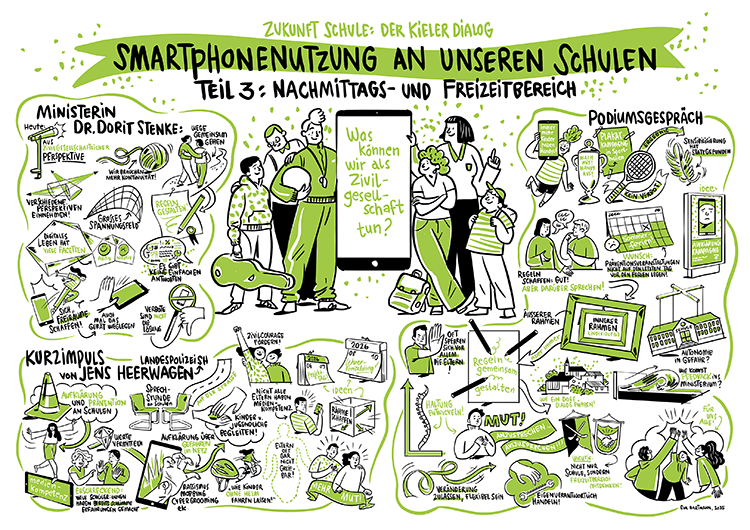 Der Kieler Dialog. Graphic Recording bei einer Veranstaltungsreihe zur Smartphonenutzung an Schulen.