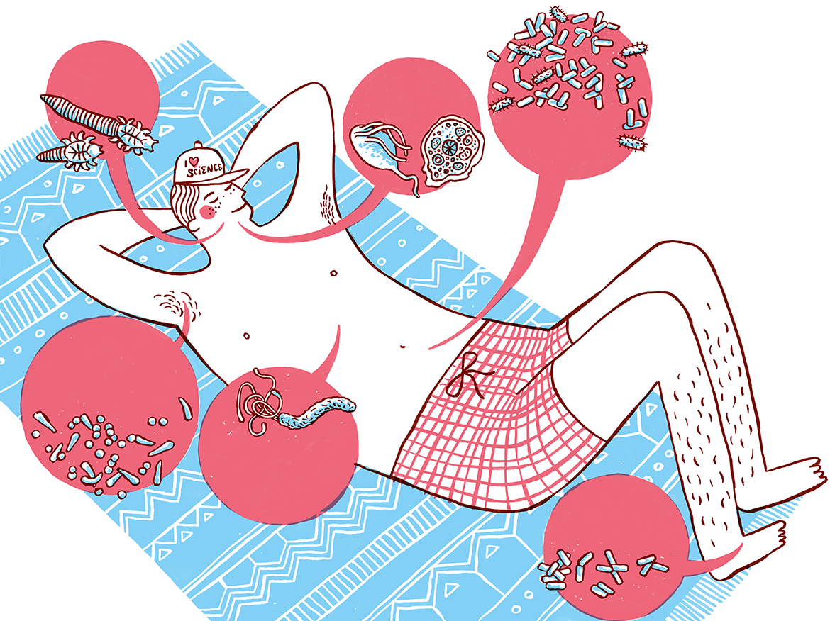 WG für 40 Billionen. Editorial Illustration zum Thema Mikrobiom, erschienen in 54°Nord Ausgabe 4